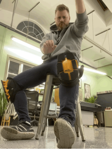 Standing in my studio in front of a work in progress 40’ x 8’ mural that was installed in Hagerstown, Maryland in June 2022.